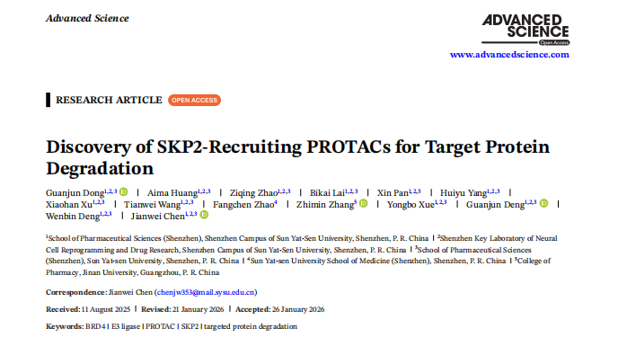 科学研究|我院陈建伟青年研究员团队在Advanced Science上发表研究论文研究背景 蛋白水解靶向嵌合体(PROTACs)是一种不同于传统“占据驱动”