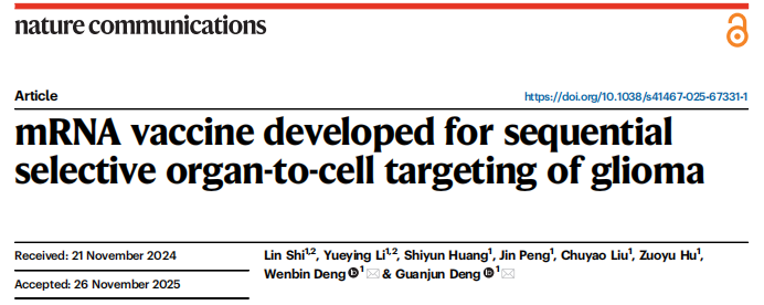 科学研究 | mRNA 精准递送新突破!中大yl9193永利集团(深圳)团队攻克胶质瘤治疗难题近日,yl9193永利集团(深圳)邓文斌教授、邓冠军副教授团队在国际知名期刊《Nature Communications》(