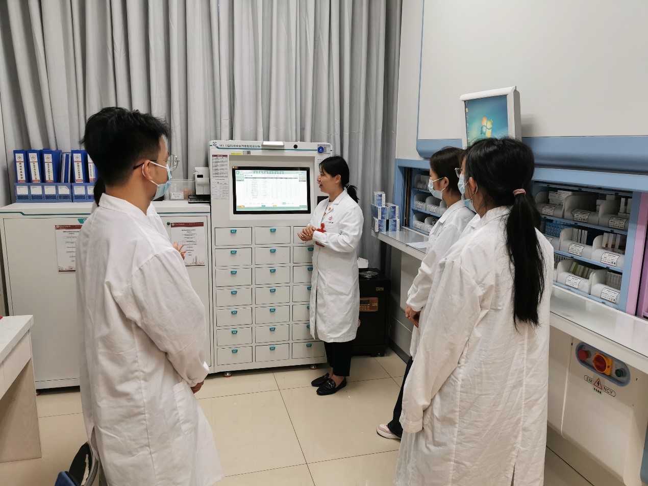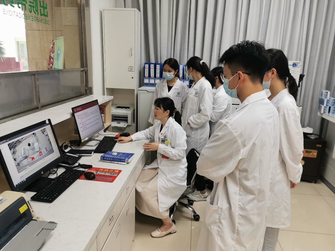 中山七院药学部周本杰主任为每批学生开展了入科教育,介绍了药学部的概况,并强调了见习的重要性。在实习过程中,同学们进行了门急诊药房、中药房、住院药房、静脉配置中心、临床药学、精准药学实验室、药库和GCP等10多个部门的轮岗,学习了药品入库操作、抓药机实操与药物拣配方法、审方点评和血药浓度监测等内容。