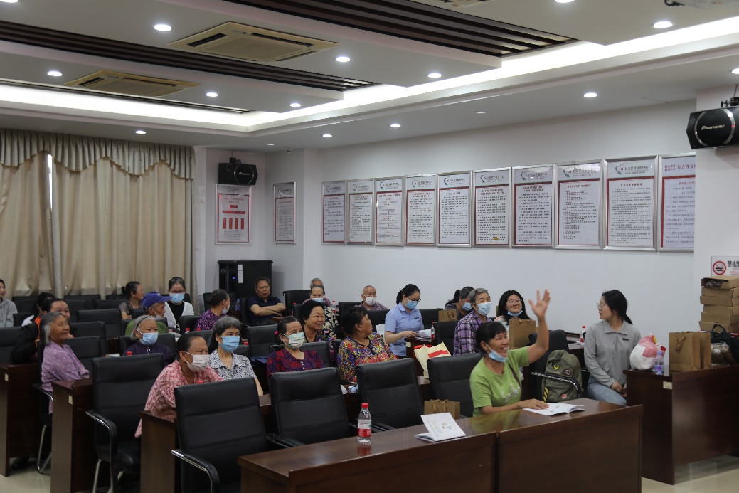 在用药安全讲座结束后,党支部陈卓彬同志主持了用药安全有奖问答环节,通过将用药安全知识融入到小问题中,让社区居民进行回答,从而进行知识的消化吸收。活动中,社区居民们踊跃回答问题,现场气氛十分活跃。