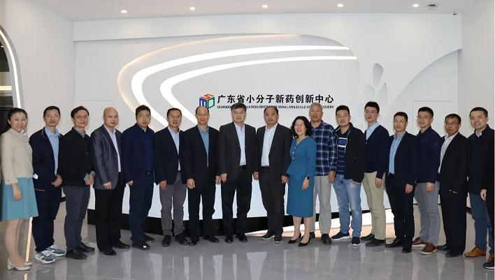 学院一行首先参观了中心在研药物产品线及研发技术实验室等情况。随后,与广东省小分子新药创新中心和祥根生物,进行了三方座谈。