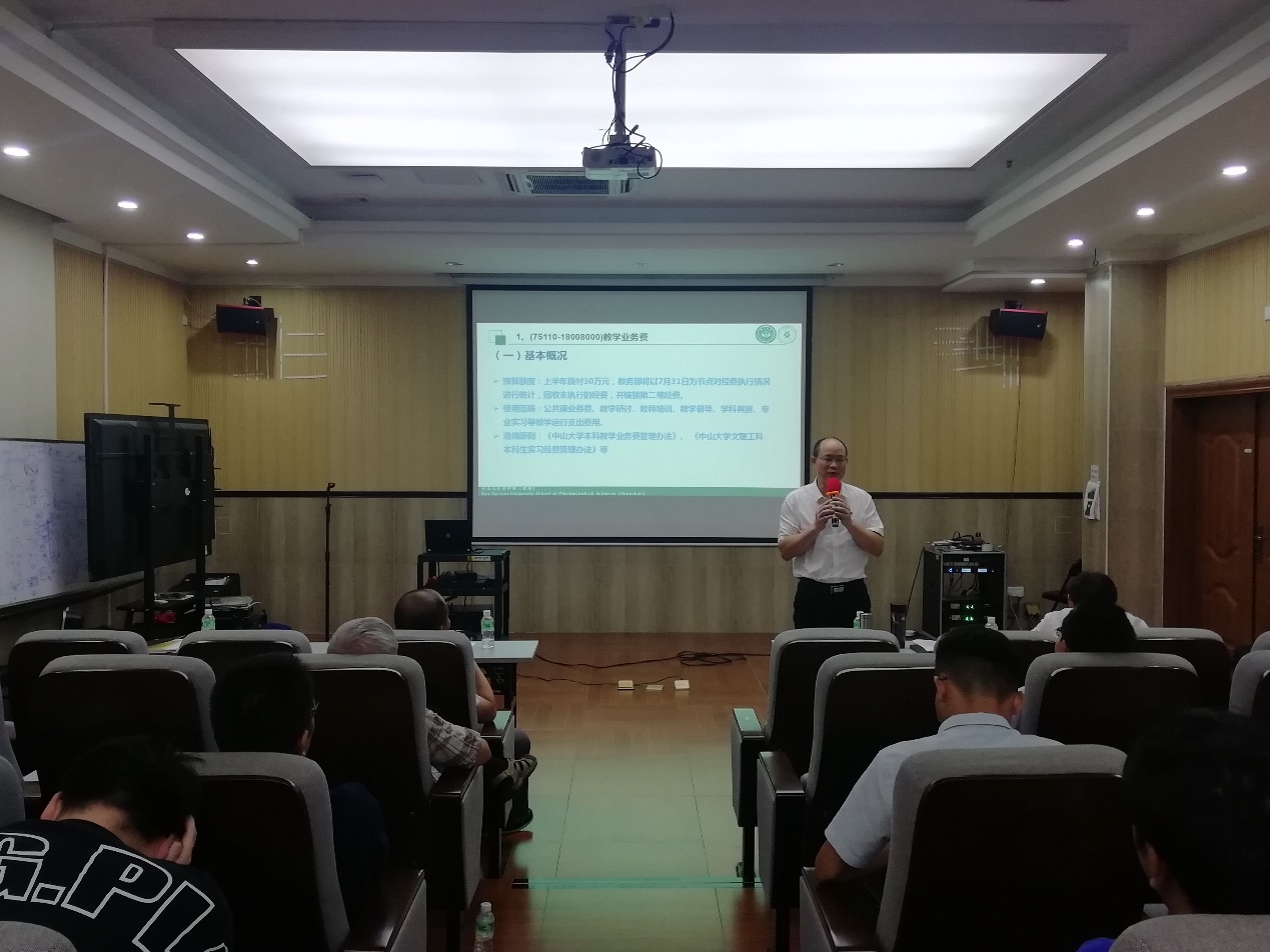 然后,谢智勇副院长作近期教学科研工作及教学相关经费使用通报,他介绍了近期广东省自然科学基金、深圳市孔雀计划等项目申报,通报了教学工作进展、大类培养有关情况,重点介绍教学业务费、大学生创新训练计划项目、本科教学质量工程项目、实验教学运行费的相关使用情况。