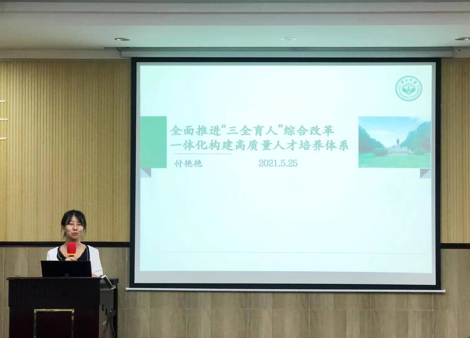 付艳艳副书记重点介绍了《中山大学深化“三全育人”工作实施方案》和《建设高质量学生工作方案》及学生相关工作。她指出,学院要全面推进“三全育人”综合改革,一体化构建高质量人才培养体系,要遵循育人规律,突出针对性;要创新育人机制,注重实效性;传达了学院“两升两降两保”的工作情况。