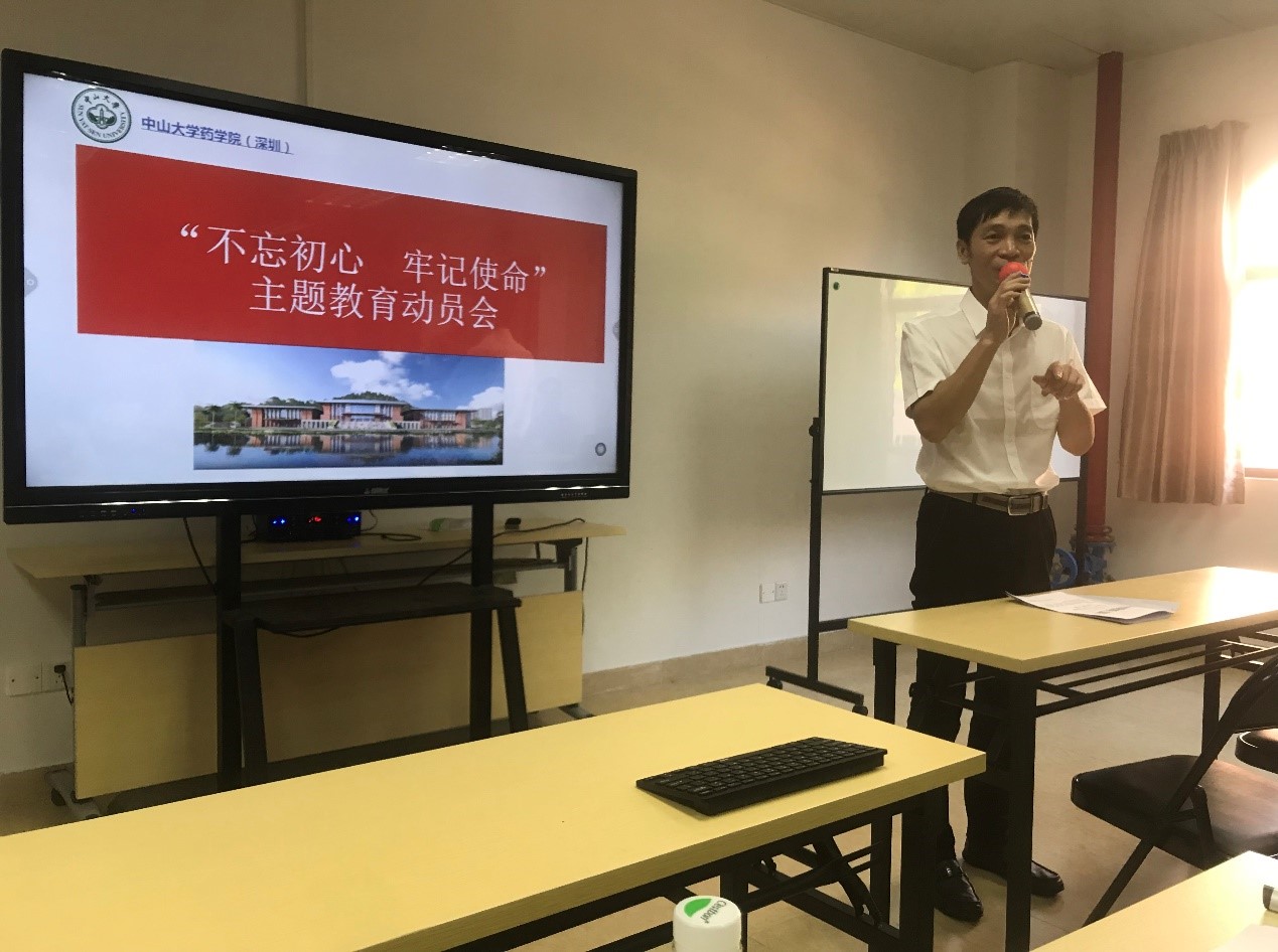 杨书记指出,共产党人的初心就是“为人民谋幸福,为民族谋复兴”,共产党人要用于担当使命。不一样的岗位,不一样的行业,均有不一样的使命。对于我们学院的党员教师,我们的使命主要为:人才培养,为中国特色社会主义事业培养合格的优秀的接班人;开展大项目研究,紧扣“三个面向”,做出原创性的重大成果;服务社会,开展新药研发,造福人类。接下来,学院党总支将从四个层面开展“不忘初心 牢记使命”主题教育活动。一学习,学习习近平新时代中国特色社会主义思想以及习近平总书记高等教育的有关论述;二调查研究,对工作和学习中出现的问题进行深入调查研究;三检视问题,对照习近平新时代中国特色社会主义思想和党中央决策部署,对照初心使命,以正视问题,查摆差距不足;四整改落实,对发现的问题进行全面整改,召开专题民主生活会,统一意志、增进团结。