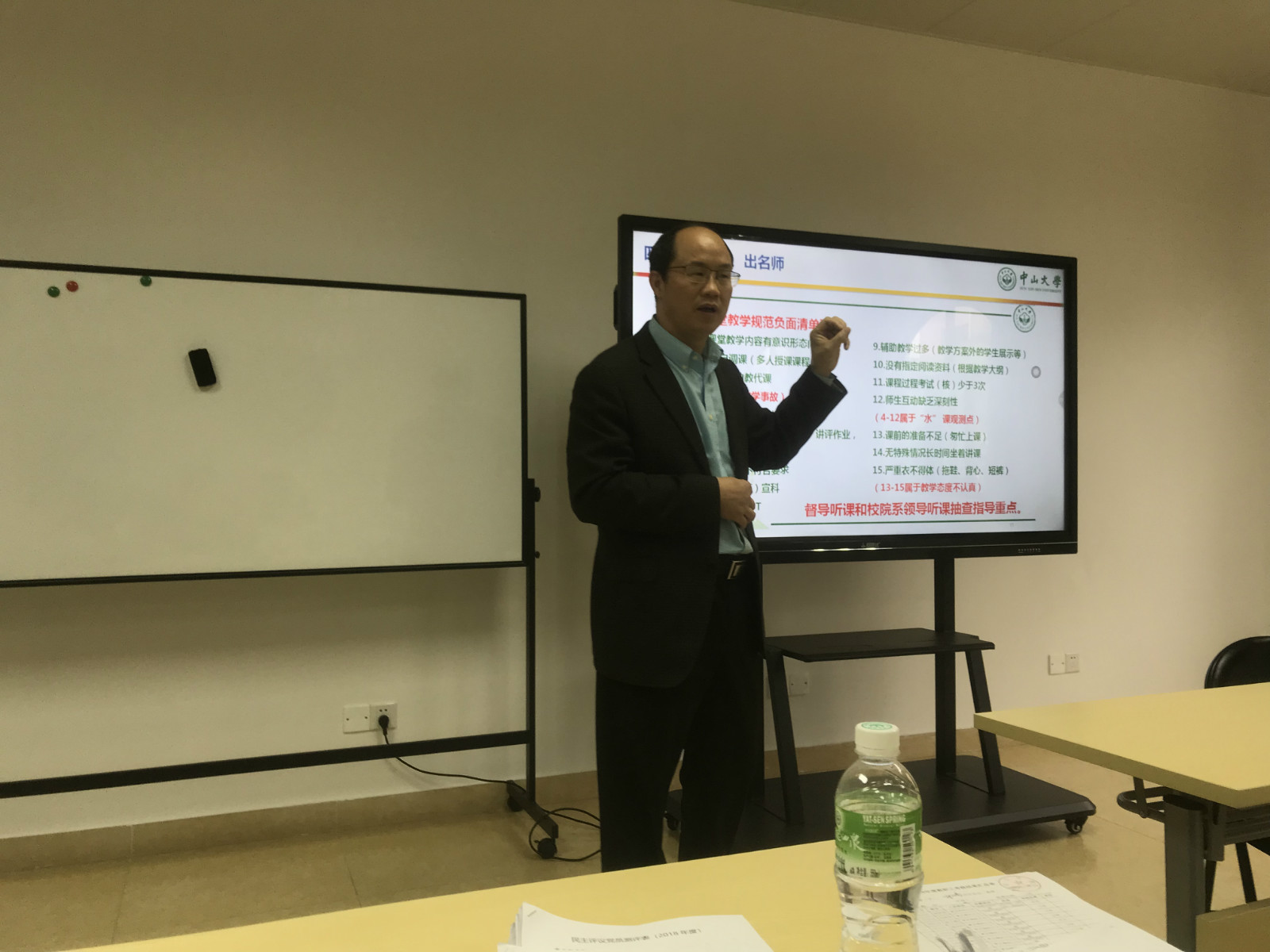 随后,谢智勇副院长向全体教职工重点介绍了学院教学和人才培养、科学研究、研究生招生等工作。谢智勇副院长强调说,“本科教育是根,人才培养是魂”,教学工作是教师的首要任务,大家一定要重视教学工作,积极参与教学,提升教学质量,实现“让学生学在中大,追求卓越;使教师教在中大,作育英才”的目标。