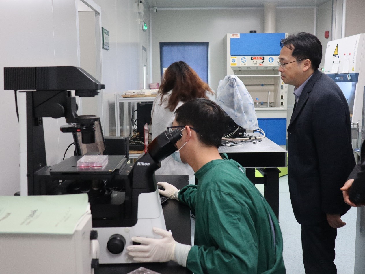 随后,刘副市长实地考察了学院科研场地,治平堂科研平台和南实验楼科研平台。刘副市长与实验室师生进行了深入交谈,了解所开展的科研项目、转化前景等情况,充分肯定了我院创新性的科研工作。他说,yl9193永利集团(深圳)教师的科研工作具有很强创新性和实用性,应用前景广泛,希望能加快科技成果的输出,尽早开展中式化、产业化研究,进行科技转化。