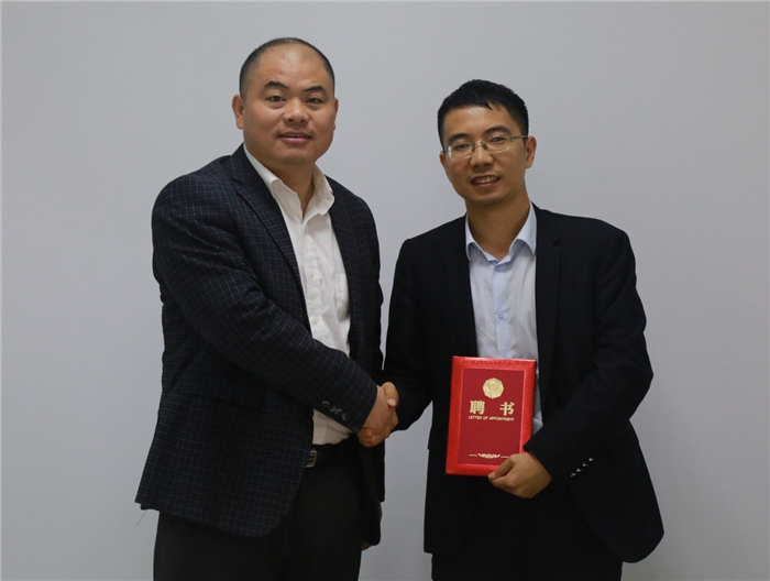 邓文斌院长代表学院对两位新任院长助理的正式上任表示热烈祝贺,指出两位院长助理能力出众,群众基础非常好。他们在学院发展关键时刻担任院长助理,将共同促进学院发展,并希望他们在做好自己的科研教学工作的基础上,做好服务管理工作,共同围绕“三足鼎立”模式,推进学院教学、科研和成果转化工作。最后,邓文斌院长分别为高艳锋、梅林两位教授颁发了院长助理聘书。