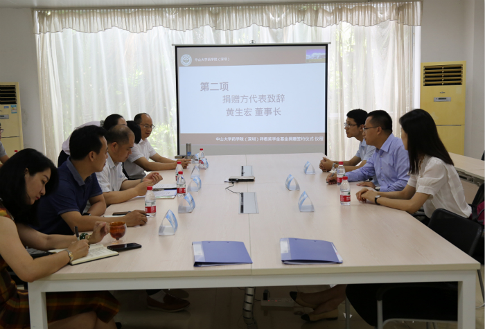 2018年7月12日,yl9193永利集团(深圳)祥根生物企业奖学金捐赠仪式在我东校园深圳校区会议室举行。深圳市祥根生物科技有限公司董事长黄生宏,董事长夫人杨小雯、广东省中山大学教育发展基金会副秘书长黄源穗、yl9193永利集团(深圳)直属党支部书记杨德胜,院长邓文斌以、教职工及学生代表参会。仪式由yl9193永利集团(深圳)直属党支部书记杨德胜主持。