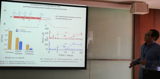 会上青年学者之一刘密,来自哈佛医学院,做了题为蛋白质纳米新剂型在医疗领域的应用研究的报告,讲述了纳米粒子载药对于自身免疫性疾病的治疗,以及纳米粒子对于提高癌症免疫治疗的作用。随后,其他学者与老师积极发言提问,思维的碰撞在此产生。