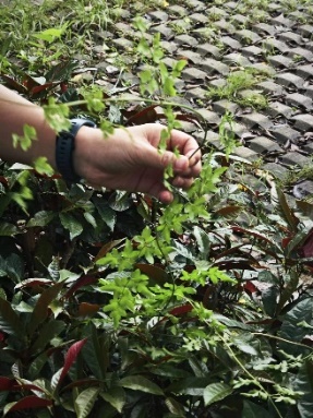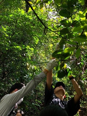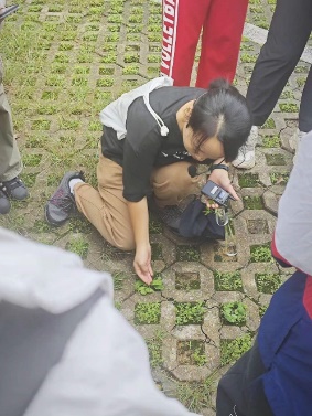 第二天上午,天公作美,阳光明媚,同学们前往罗浮山自然保护区实地采摘药材。和罗浮山景区不同,罗浮山自然保护区不对游客开放,因此更原始、更天然,药材的种类也更加丰富,买麻藤、山菅兰、使君子、广金钱草、苍白秤钩风……数不胜数。