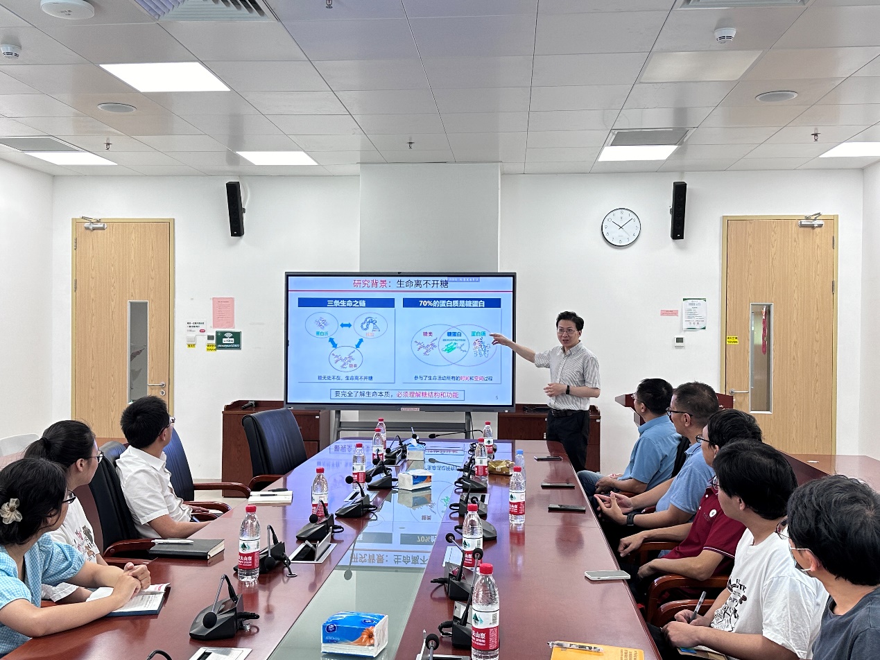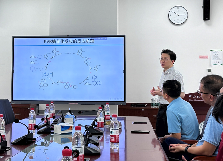 在师生的热烈掌声中,肖国志研究员进行了详细且精彩的讲解。肖国志研究员围绕发展新方法和新策略高效合成糖类和核苷类化合物这一主题开展研究工作,发展了基于糖基PVB糖苷化反应新方法和糖组装新策略,提出了融合试剂调控和远程参与的糖苷化反应新策略,应用新方法和新策略实现了一系列复杂糖类天然产物和核苷类药物的高效合成。这项研究不仅加快了碳水化合物的合成速度,而且减少了化学浪费。肖国志研究员对于糖基PVB糖苷化反应新方法和糖组装新策略的报告有效开拓了师生的视野。