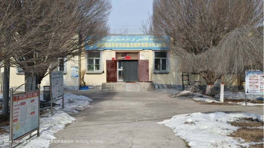 残雪未消的冬日 村里卫生站在枯树旁守望健康