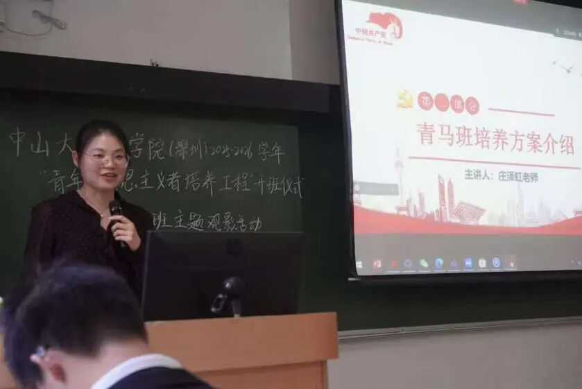 仪式后,庄泽虹老师详细介绍了青马班的培养方案。本学年青马班将围绕理论学习与实践考察两大模块,涵盖马克思主义中国化时代化最新成果、青年责任与使命、社会实践与志愿服务等。