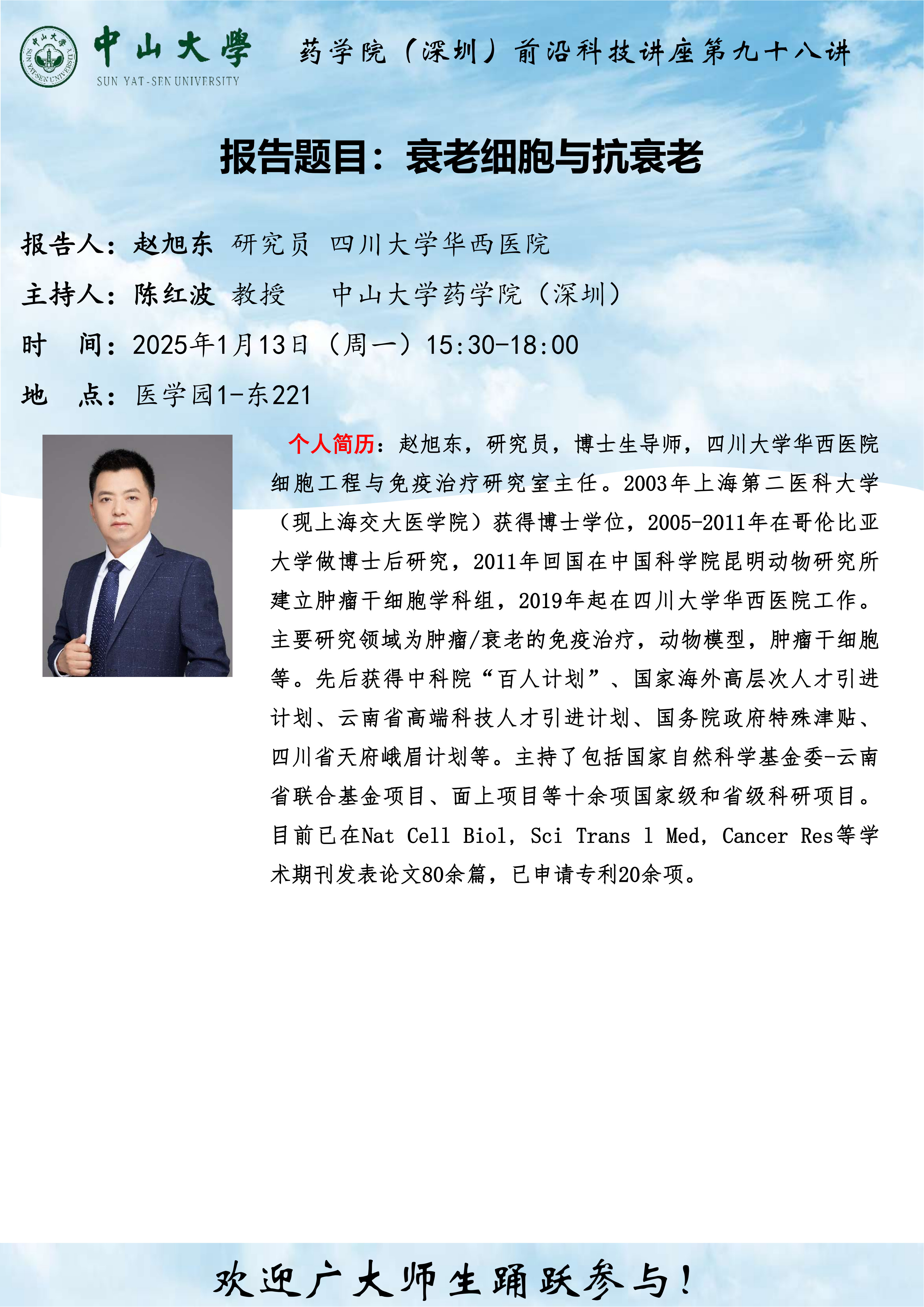 yl9193永利集团(深圳)前沿科技讲座第八十九讲:衰老细胞与抗衰老讲座